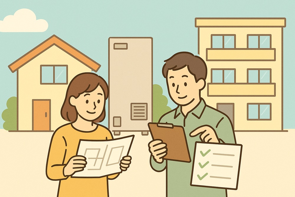 相見積もりのときは工事範囲の前提条件(基礎の新設有無・配管ルート・夜間作業可否など)を揃えて比較するのがコツです。